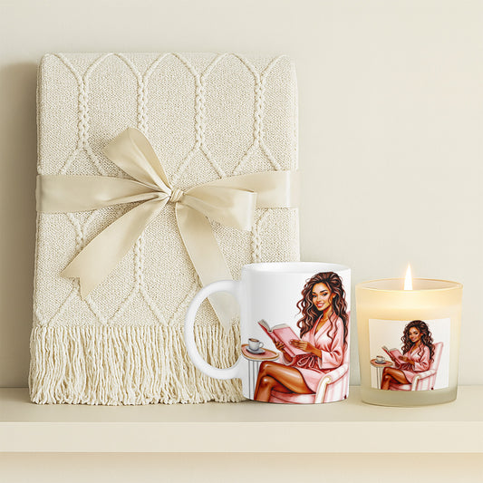 Cozy Girl Reading Candle with Mug & Blanket Gift Set