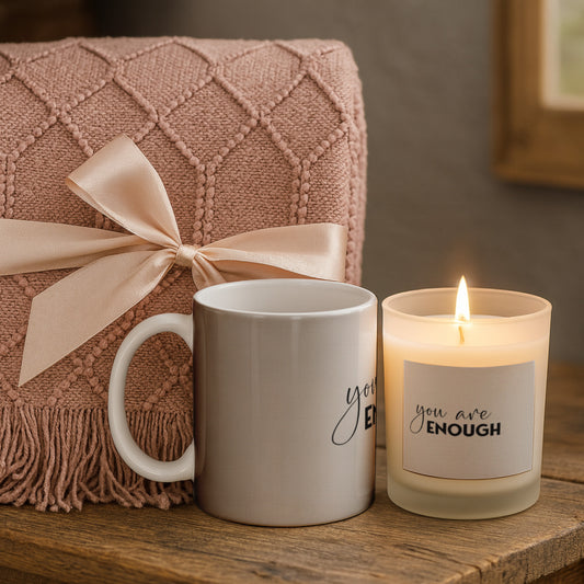 Mental Wellbeing Candle with Mug & Blanket Gift Set