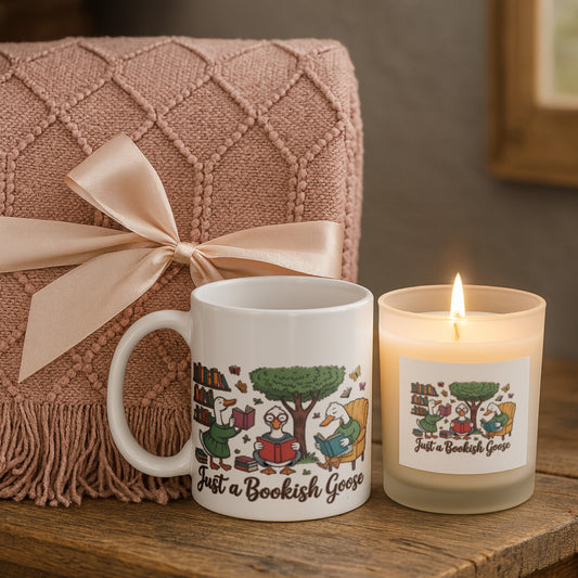 Bookish Goose Candle with Mug & Blanket Gift Set