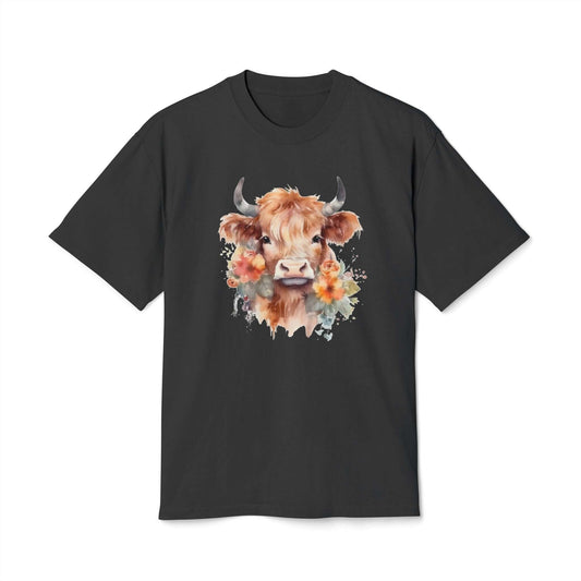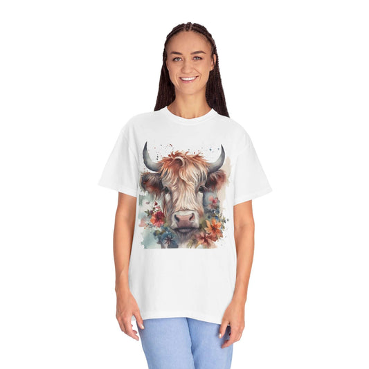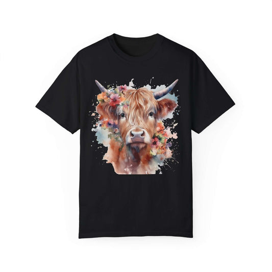 Floral Highland Cow Heavy Faded T Shirt
