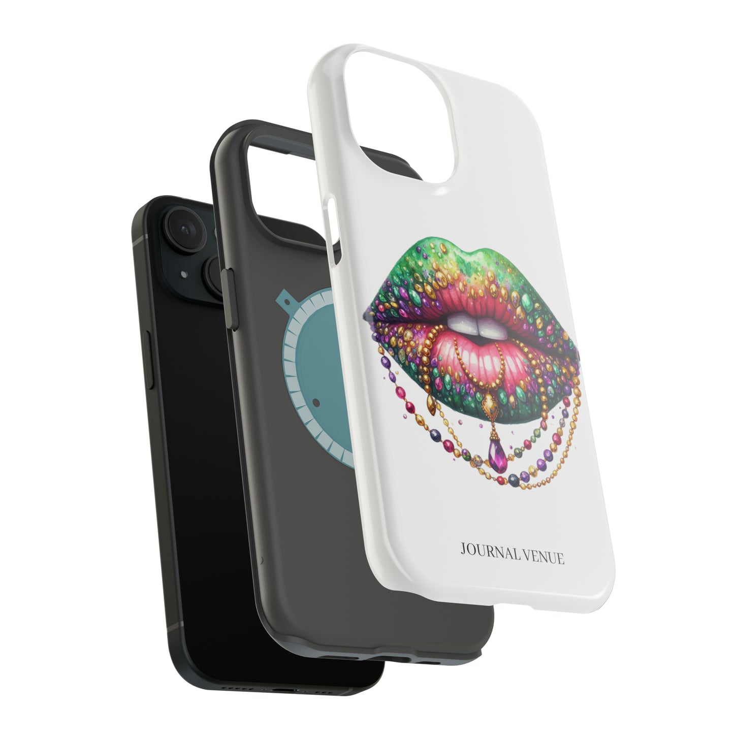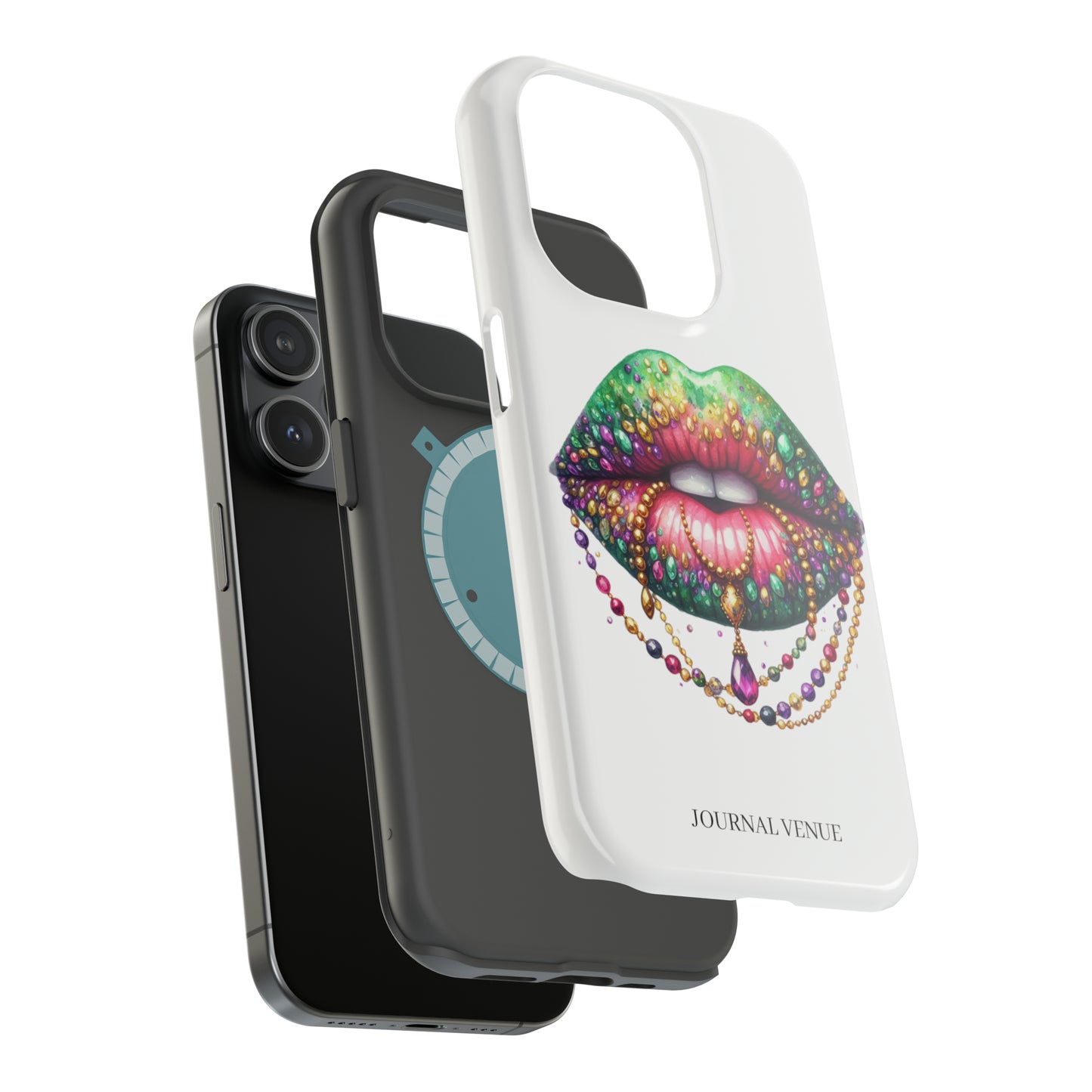 Experience the perfect balance of style and function with our Jeweled Mardi Gras Lip MagSafe Tough Iphone Cases. Featuring a durable polycarbonate shell and a soft black TPU lining, our case provides impeccable protection while offering a trendy and flexible design. You can choose from a matte or glossy finish, and each case includes an embedded magnet for enhanced compatibility with Apple MagSafe accessories. With a full-wrap print on the exterior, your case will not only protect your phone, but also showcase your unique style. Get the ultimate durability and impact resistance with our dual layer case. Upgrade your phone's protection while adding a touch of elegance with our Jeweled Mardi Gras Lip MagSafe Tough Iphone Cases.